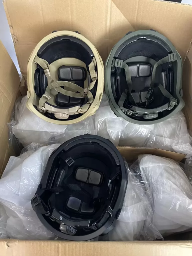 Les casques tactiques modernes sont fabriqués à partir de matériaux composites avancés tels que le kevlar, le polyéthylène à haute densité, ou des fibres d’aramide. Ces matériaux offrent une résistance élevée aux balles et aux éclats. Le design est également influencé par des considérations ergonomiques, avec des ajustements possibles pour s’adapter à différentes tailles de tête et pour réduire la fatigue.