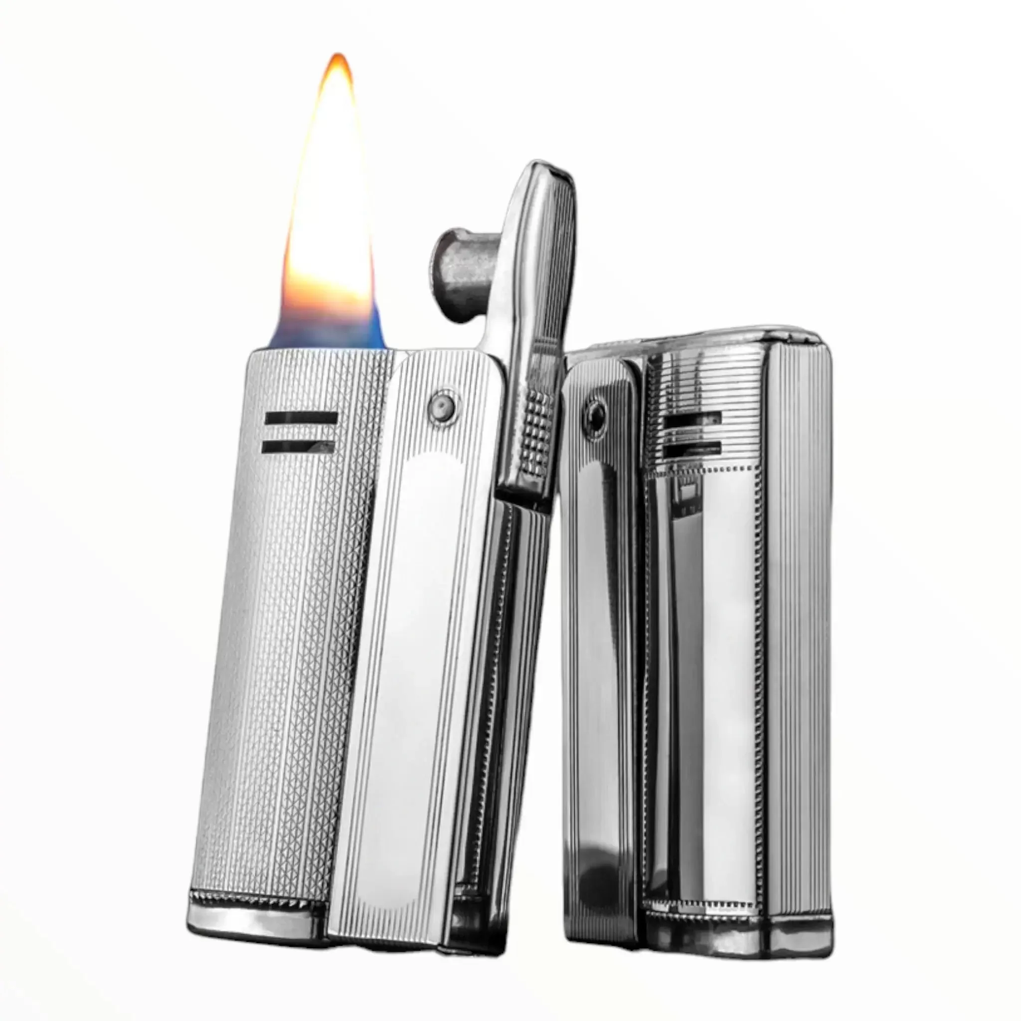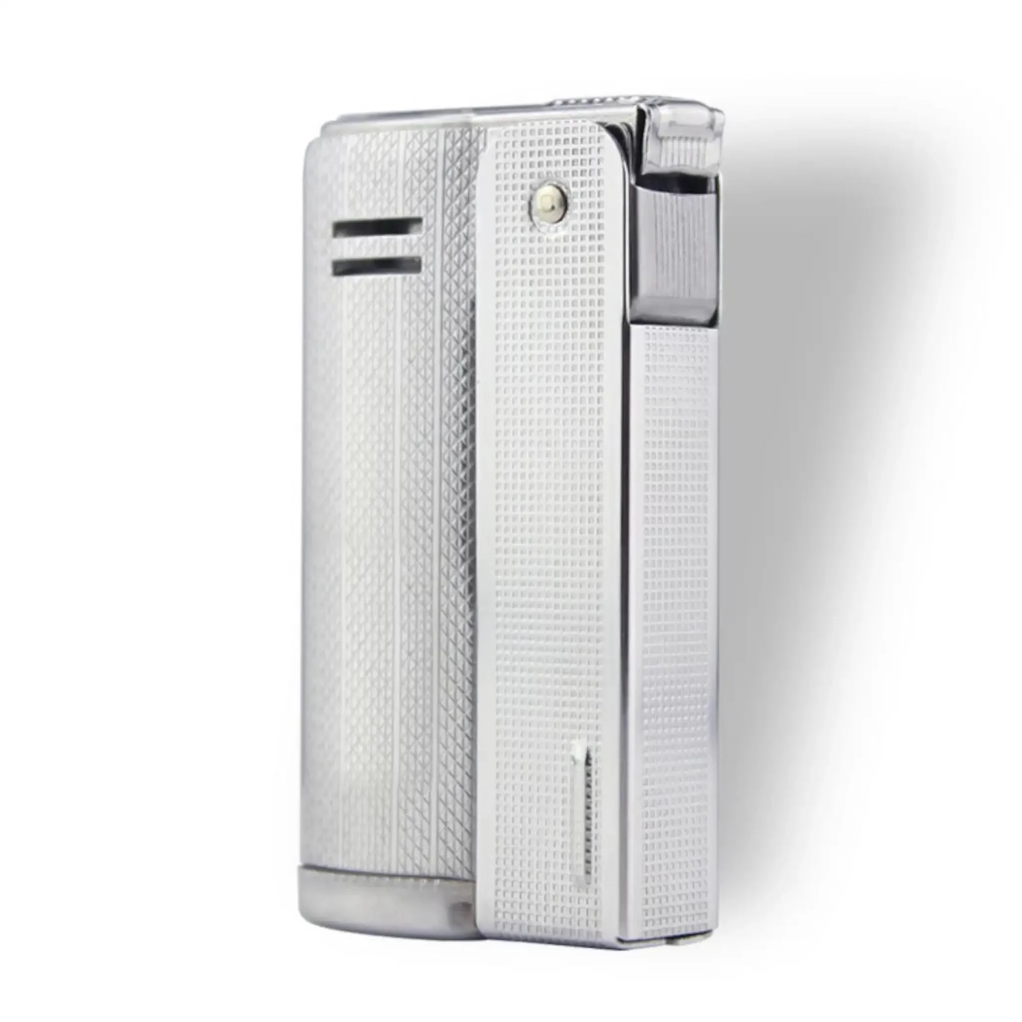 • Design élégant et moderne : Avec son fini argenté brillant et sa texture finement gravée, ce briquet allie un design moderne à un aspect classique, ce qui en fait un choix parfait pour ceux qui recherchent à la fois style et fonctionnalité.