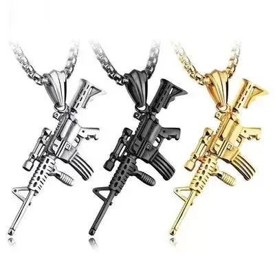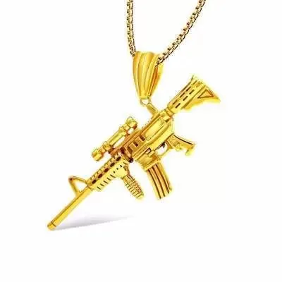 Le pendentif de ce collier est très atypique car la mitrailleuse couleur argent et couleur or est très bien faite. Convient à tous les types de vêtements : décontractés, classiques, bobo-chic, ce Collier Militaire Mode Masculine est très à la mode et présente un très bon rapport qualité-prix.