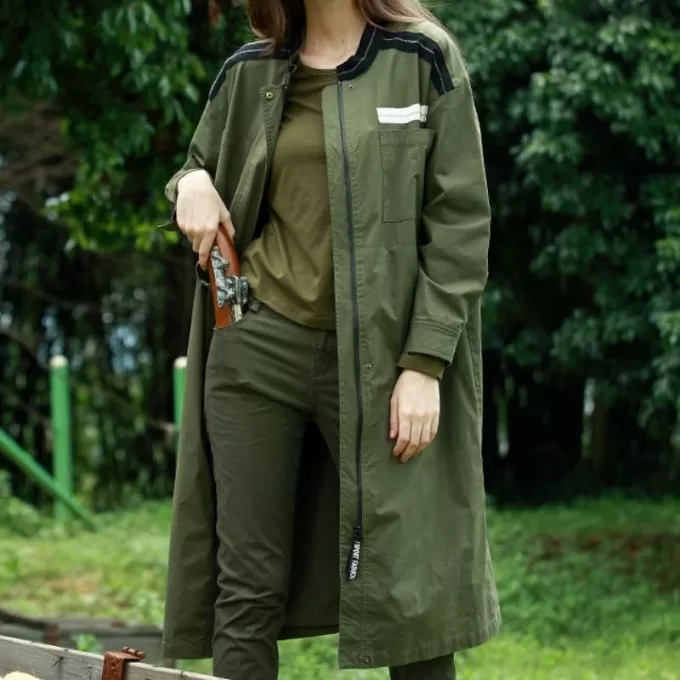 Ce manteau couleur militaire de l’armée sera idéal pour l’entre deux saison. Assez long pour vous protéger du froid et du vent mais assez léger pour pouvoir le porter lorsqu’il fait beau. Il possède des poches sur les cotés et se ferme à l’aide d’une fermeture éclair centrale.