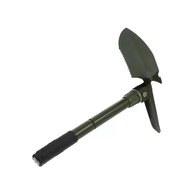 - Ultra polyvalent : Intègre une pelle, un décapsuleur, une scie, une pioche et une boussole.