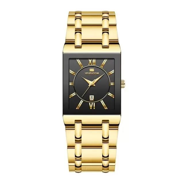 Pour ceux qui veulent visiblement être agressifs, cette montre haute tendance sera parfaite. Elle se compose de bracelet en acier doré et de cadran en noir. Votre montre tendance est parfaite pour les hommes de tous les styles. Avec un bracelet en acier doré, elle mettra votre look au plus haut niveau avec votre costard.