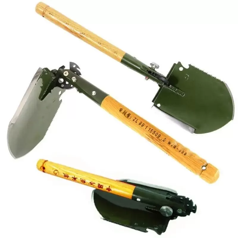 Cette Pelle Pliante avec Affichage complet à 360° est dotée de surface tournante et de positionnement multi-angle à quatre trous. L’accessoire comporte un dispositif d’arrachage, une position de la cheville de la truelle, une position du crochet, une position du petit bouclier, un arrache-clou. La corde d’escalade est trouée.